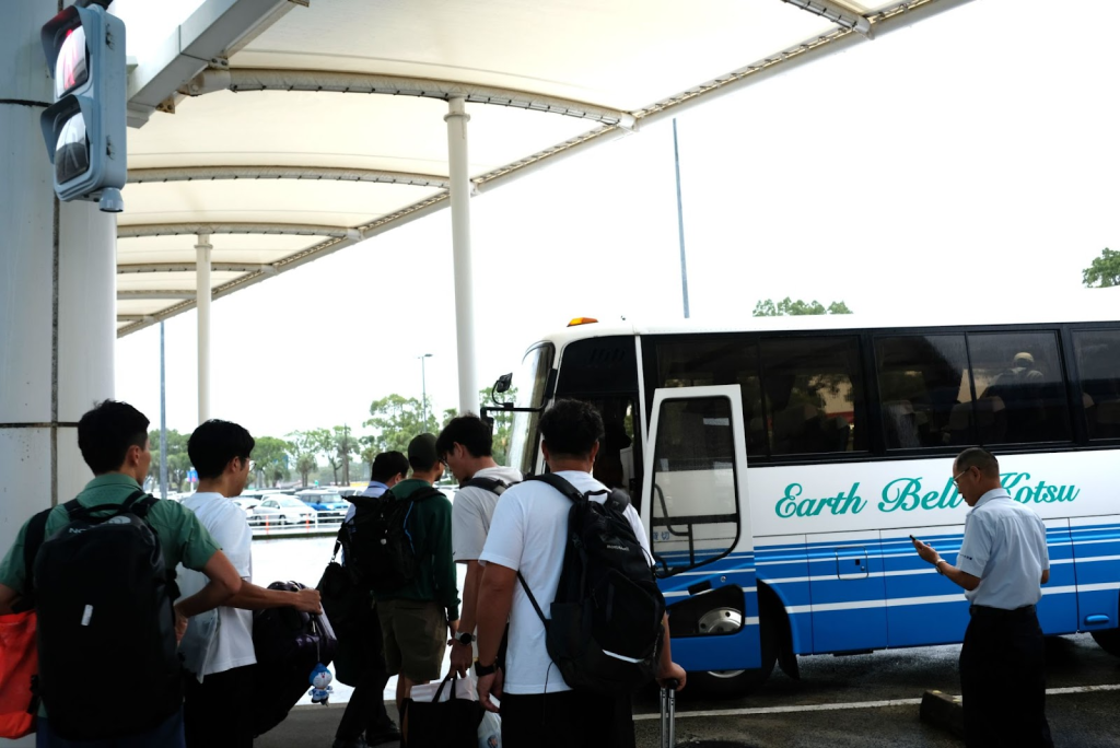 鹿児島空港に到着し、参加者は早速用意されたバスに乗り込みます。