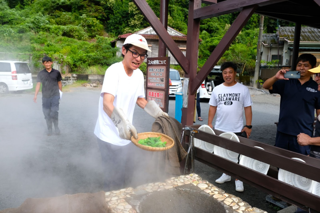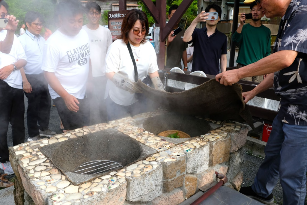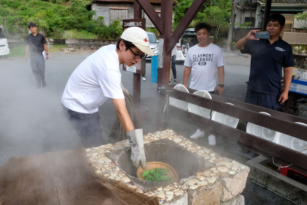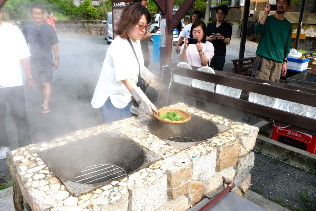 スメは噴出する温泉の蒸気を利用した天然のかまどなんですって!