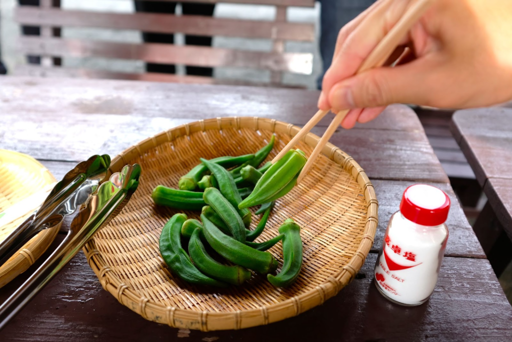 オクラとIPM農業について学んだあとはお昼ごはんに。