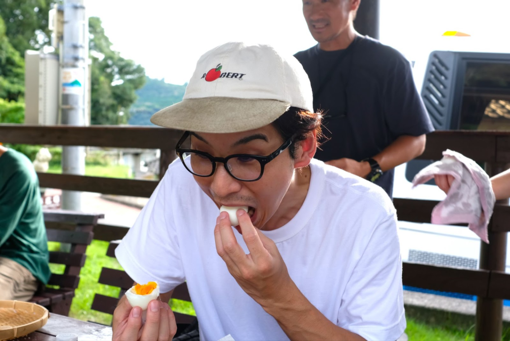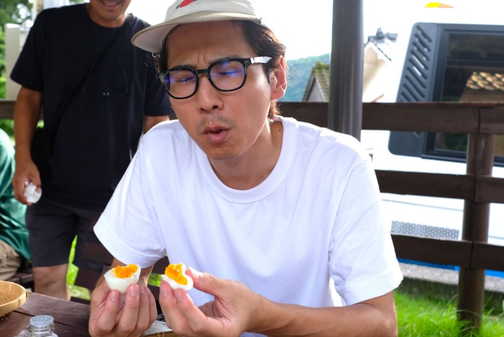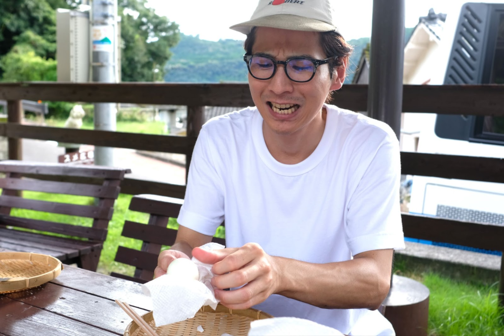たまごの熱さでだんだん「スメ顔」になってくる富田P。
