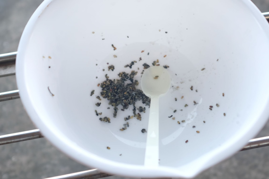 アマモの種はこんなかんじ。お米粒よりずっと小さい。