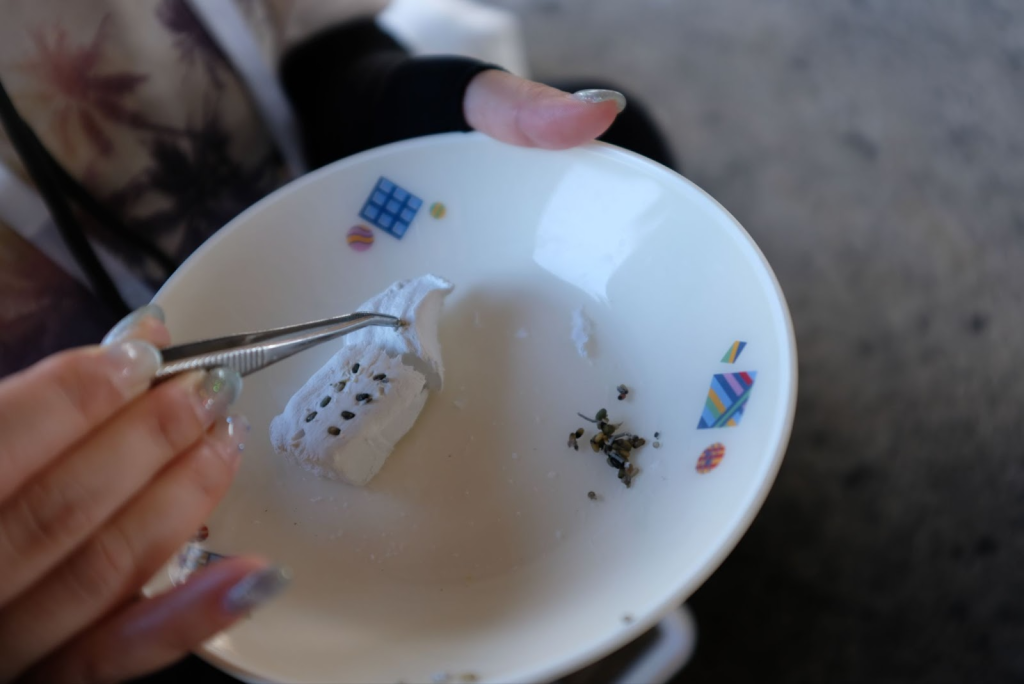 こんなかんじで紙粘土にアマモの種を埋めていきます。