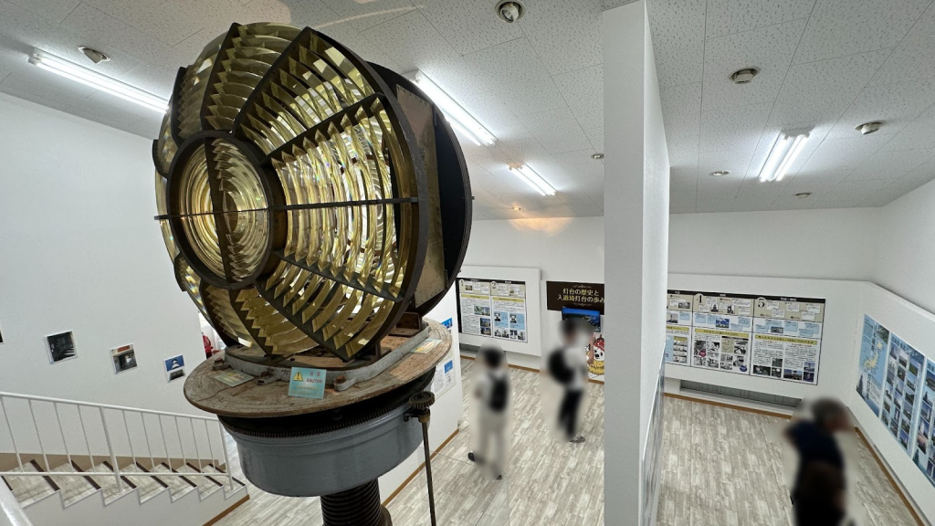 艫作埼灯台(へなしさきとうだい)の大型レンズをはじめ、貴重な資料がずらり