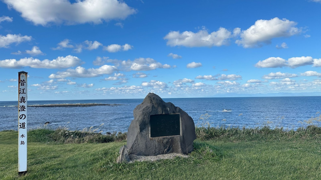 北緯40度のモニュメントと、江戸時代後期の紀行家・菅江真澄(すがえ ますみ)の碑がありました。