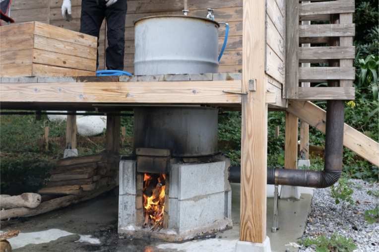 どんどんドラム缶風呂の下にある