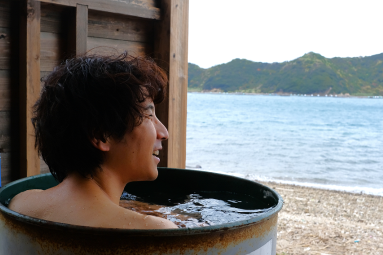 海の目の前で入るドラム缶風呂