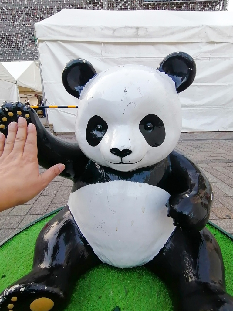 再会を願って、御徒町駅前のパンダとハイタッチ。