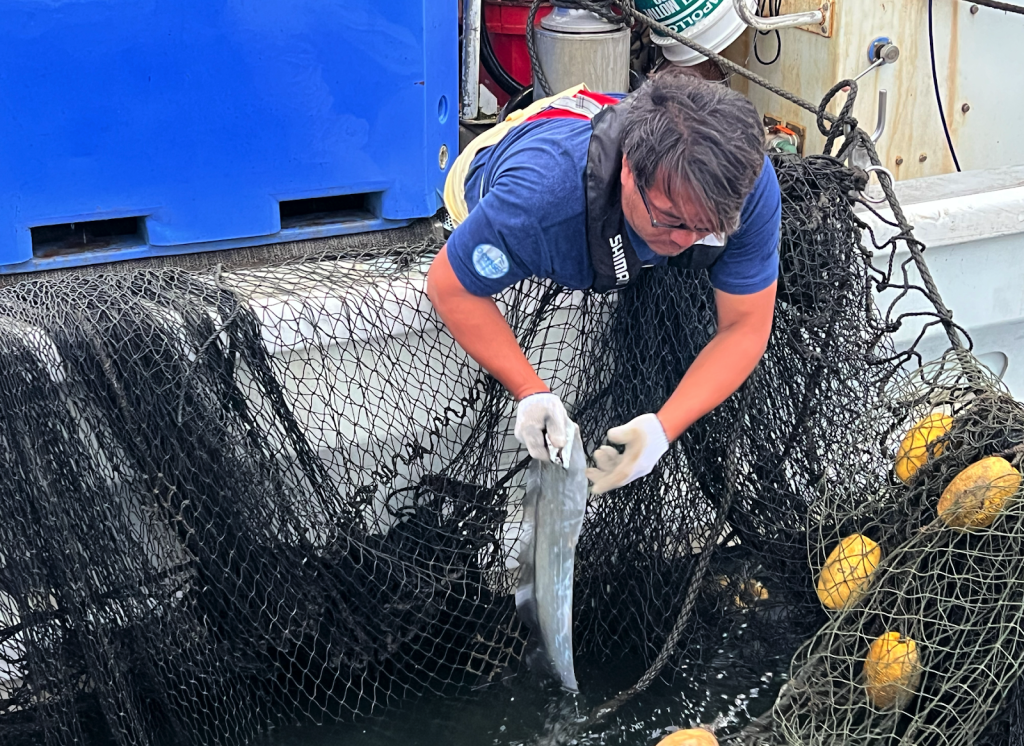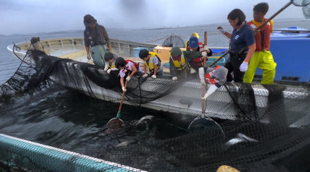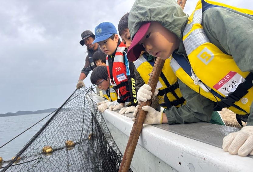 本イベントでは、実際に定置網で魚を取り、それをさばき「漁師めし」を作る調理体験や、地元漁師や研究者による「海の学び講座」を実施。