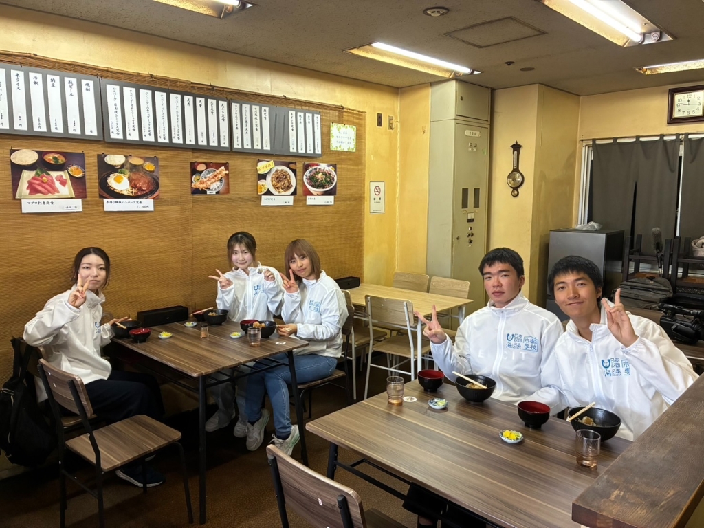 収録当日は、私たちがInstagram用に店舗を取材する様子を、テレビカメラが撮影していました。初めてのテレビ取材はとても緊張しましたが、それ以上にワクワクな気持ちの方が大きかったです! 取材にあたって、今までどういった活動をしてきたか自分自身で振り返れる良い機会ともなりました。豊洲市場でのヒアリング、FOODEX、魚ガチャ、Instagram運用など、ほかにも数え切れないほどの活動を思い出し、取材前の「心構え」に自信が持てました。